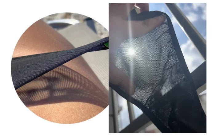 Wir verwenden ausschließlich den originalen, zertifizierten Tan-Through-Stoff. Viele Billiganbieter nutzen einfach nur dünne, transparente Stoffe ohne Bräunungseffekt.
